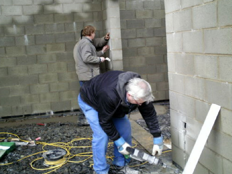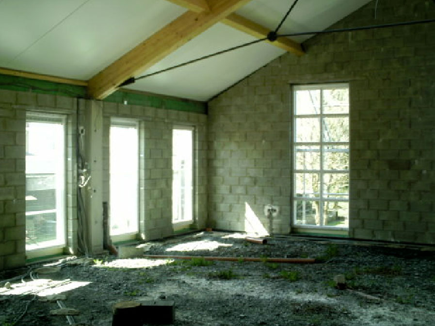 Fin 2008, nous avons eu assez d’argent pour lancer la première tranche des travaux, à savoir le gros-œuvre, en d’autres mots, effectuer les terrassements nécessaires et la construction des murs.